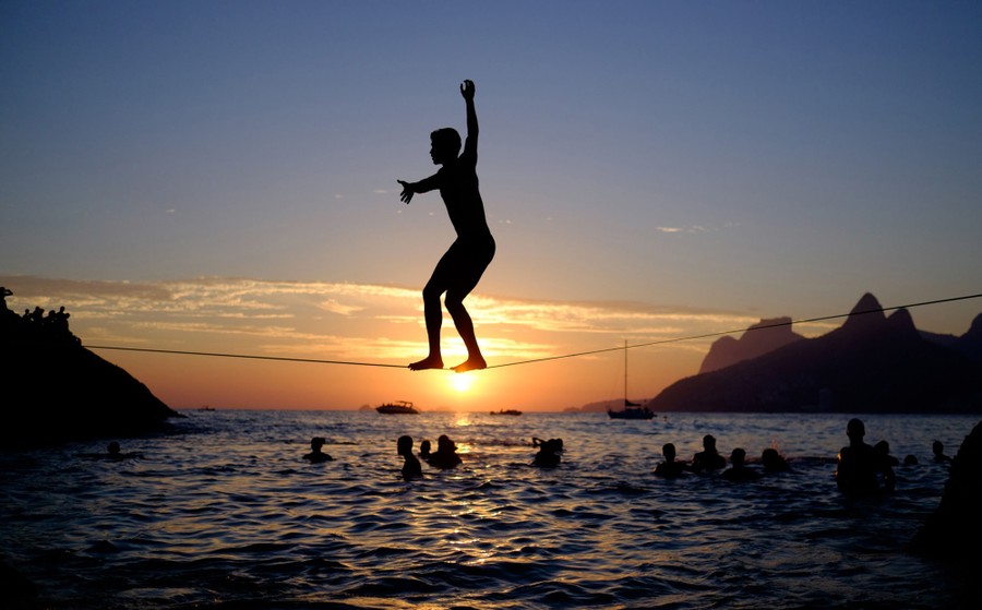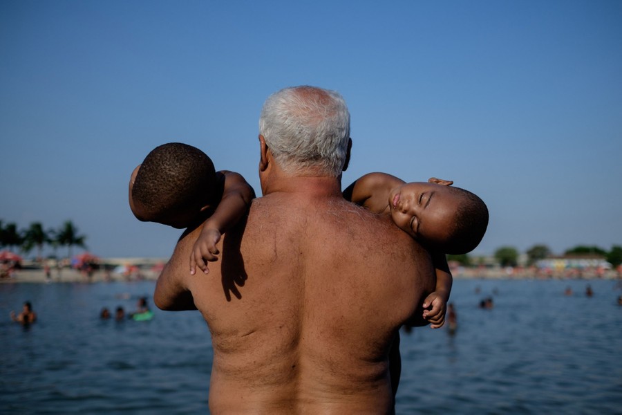 Read moreA man holds twins at the Ramos Pool on the day of St. Sebastian, the patron saint of the city, on January 20, in Rio de Janeiro. The Ramos Pool, inaugurated in 2001, is an artificial beach associated to a public salt pool which filters the polluted seawater from the Guanabara bay located next to it. #