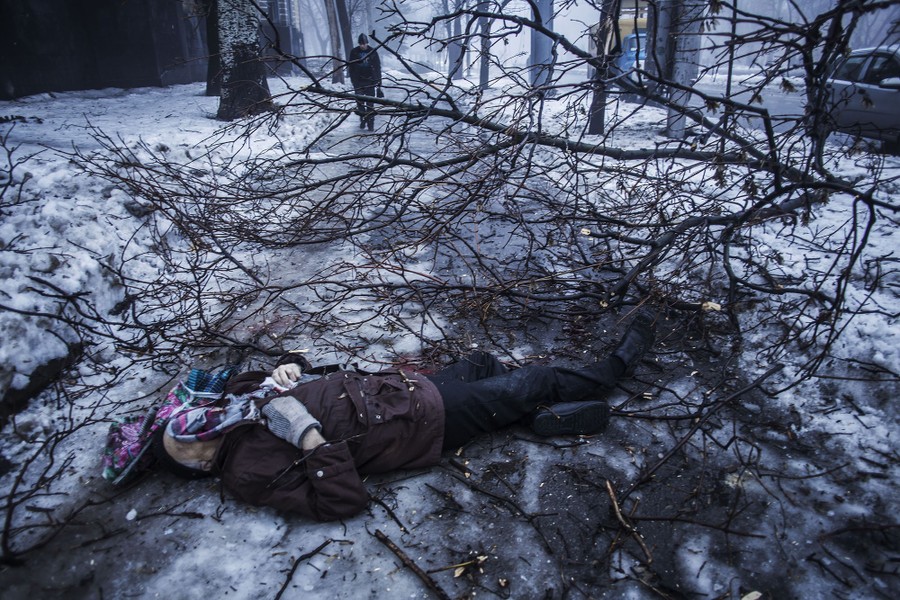 Read moreA person walk near the remains of a man lying near a bus stop that was damaged in shelling by the Ukrainian army in Donetsk, eastern Ukraine, on January 20. At least three civilians were killed in shelling Tuesday in eastern Ukraine as fighting continued between government and rebel forces in the separatist-held city of Donetsk. #