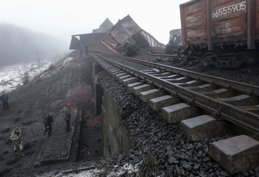 Read moreEmergency workers inspect a damaged bridge near Kuznetsovka village in Zaporizhzhya region of Ukraine on January 21. An overnight blast destroyed a railway bridge in the eastern Ukrainian region of Zaporozhye, cutting a railway link between the city of Mariupol and Ukraine's west. Ukraine's state security service said suspects had been identified in relation to the blast, and were currently being searched for. The east of Ukraine has suffered a surge in violence in recent days. There is a growing sense of foreboding as fighting between Ukrainian government forces and separatists intensifies, complicating peace efforts involving Ukraine and Russia. #