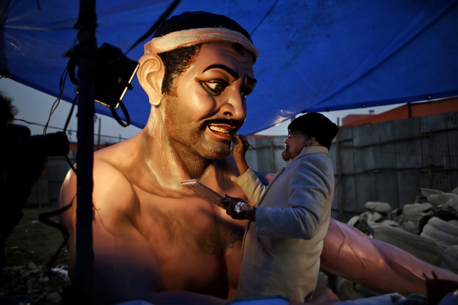 Read moreAn Indian artist gives final touches to a giant figure that is part of a tableau of Goa state during a media preview ahead of Republic Day, displaying a glimpse of culture of different parts of India, in New Delhi on January 22. #