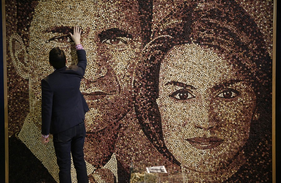 Read moreScott James Gundersen checks the eyebrow of Spain's King Felipe VI in his wine cork portrait of the Spanish monarch and his wife Queen Letizia during opening day at Madrid's International Tourism Trade Fair on January 28. #