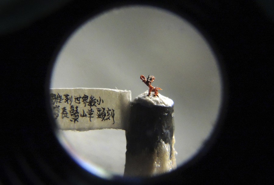 Read moreA miniature resin figurine of a goat is displayed on top of a pencil lead in Taipei on January 28. The goat is about 0.08 centimeters (0.03 inches) long and 0.07 centimeters (0.03 inches) high. Chen created the figurine to welcome the upcoming Lunar Year of the Goat in 2015. #