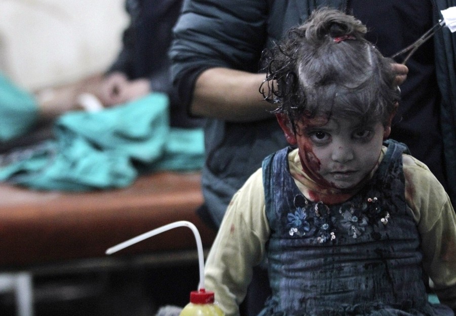 Read moreAn injured girl waits for treatment in a field hospital after what activists said was an airstrike by forces loyal to Syria's President Bashar al-Assad in the Duma neighborhood of Damascus, Syria on January 28. #