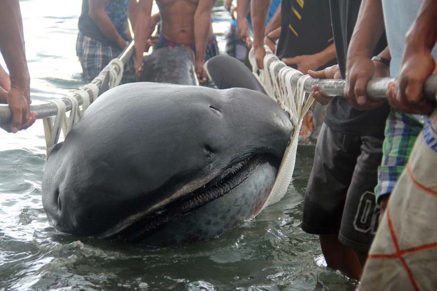 Read moreFishermen use a stretcher with steels bars to carry a rare 15-foot (4.5-meter) megamouth shark (Megachasma Pelagios) on January 28. The shark was captured in a fishermen's net in Burias Pass in Albay and Masbate provinces, central Philippines. A megamouth shark can reach to a maximum length of 17 feet (5.2 meters) with a life span of 100 years. It resides in deep waters but rises towards the surface at night to feed or eat plankton. #