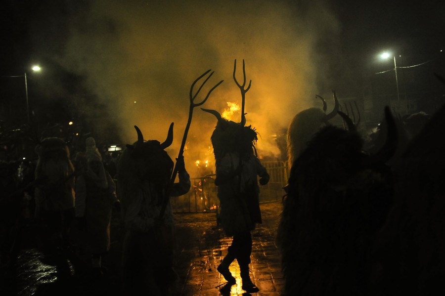 Read more''Momotxorros'' take part in the carnival wearing his typical carnival dress, in Alsasua, northern Spain, on February 17. Momotxorro, characters who seem to have been resurrected from a prehistoric ritual, come out onto the town's streets. Wearing horns and hiding their faces under headscarves, they are dressed in a white sheet stained with blood, sheepskin gilets, blue trousers, white socks and black sandals. They tour the town roaring fiercely and brandishing their wooden staves, goading and frightening everyone who gets in their way. #