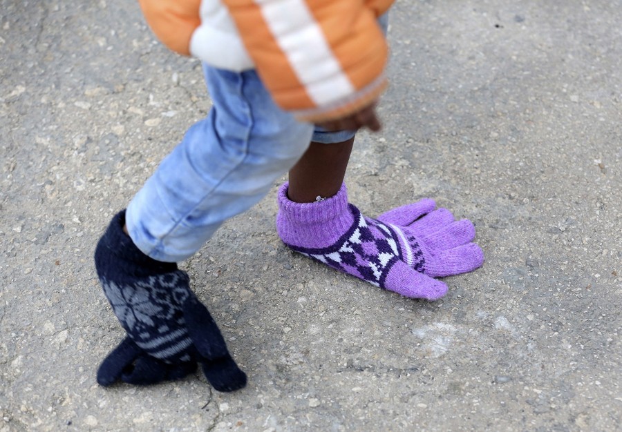 Read moreA child wears gloves on her feet as she arrives with her mother on the boat "Nos Taurus Genova" at the Sicilian harbor of Pozzallo, on February 16, 2015. Better weather since last week has encouraged migrants to make the perilous journey from North Africa, where a breakdown of order in Libya has made it almost impossible to police the traffickers who pack people onto rickety boats. #