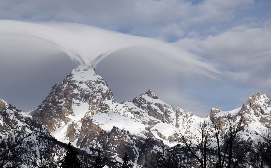 Read moreThis photo taken Thursday, February 12, 2015, and provided by the Grand Teton National Park shows, an unusual cloud formation across the summit of the Grand Teton in this view from the park's headquarters campus at Moose, Wyoming. #
