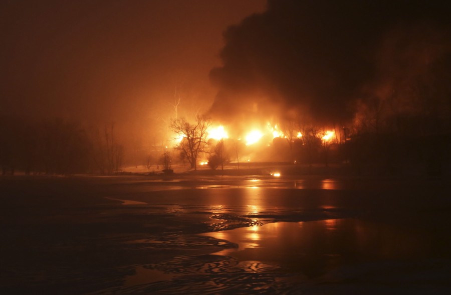 Read moreA CSX Corp train burns after derailment in Mount Carbon, West Virginia pictured across the Kanawha River in Boomer, West Virginia, on February 16, 2015. The train hauling North Dakota crude derailed in West Virginia on Monday, setting a number of cars ablaze, destroying a house and forcing the evacuation of two towns in the second significant oil-train incident in three days. #