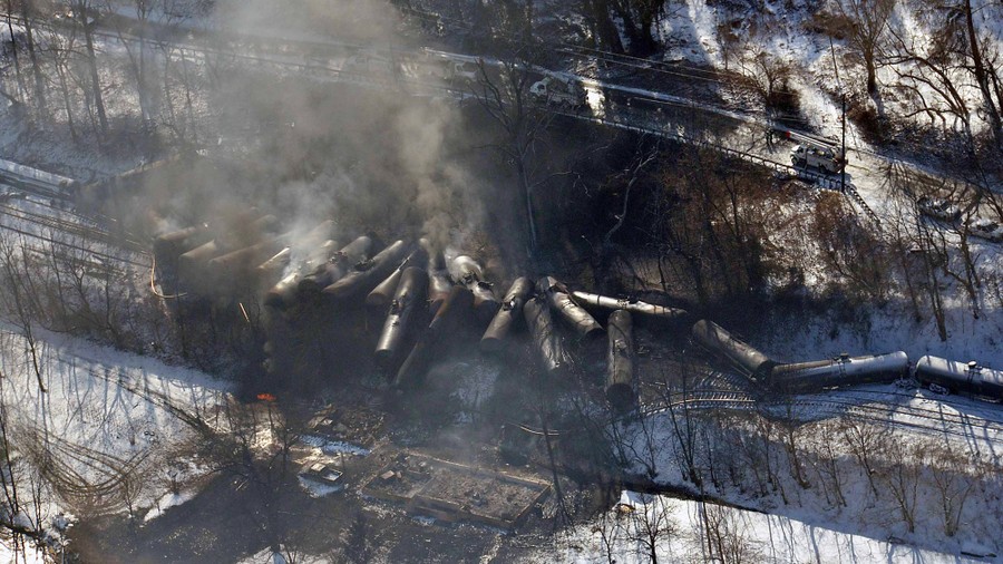 Read moreIn this aerial photo made available by the Office of the Governor of West Virginia shows a derailed train in Mount Carbon, West Virginia, on February 17, 2015. The train carrying crude oil derailed Monday night, causing a large fire that forced hundreds of people to evacuate their homes and temporarily shutting down water treatment facilities. #