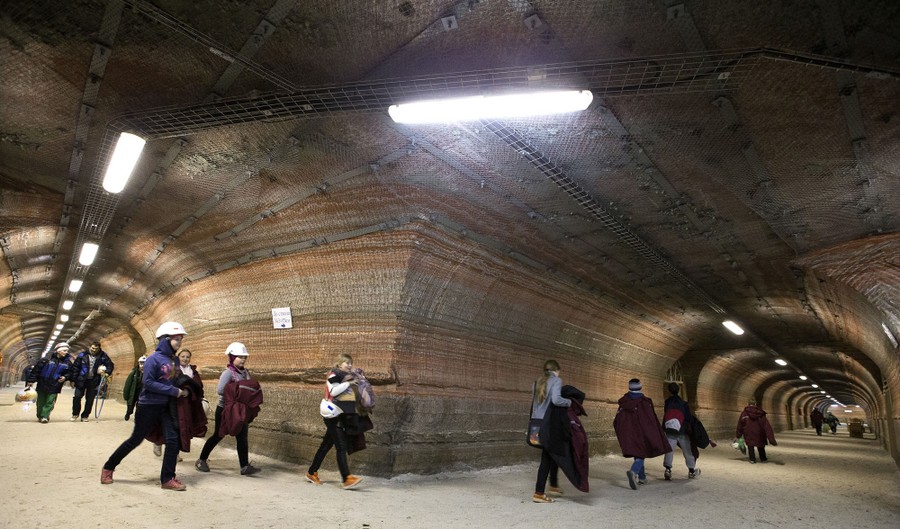 Read moreChildren walk in the facilities of Belarus' Republican Clinic of Speleotherapy within a salt mine near the town of Soligorsk, south of Minsk, on February 19, 2015. According to the state clinic, more than 7,000 children and adults seek medical treatment for respiratory illness each year in the subsurface chambers of its facilities, located 420 meters underground between layers of potassium and stone salts in an operational salt mine. #