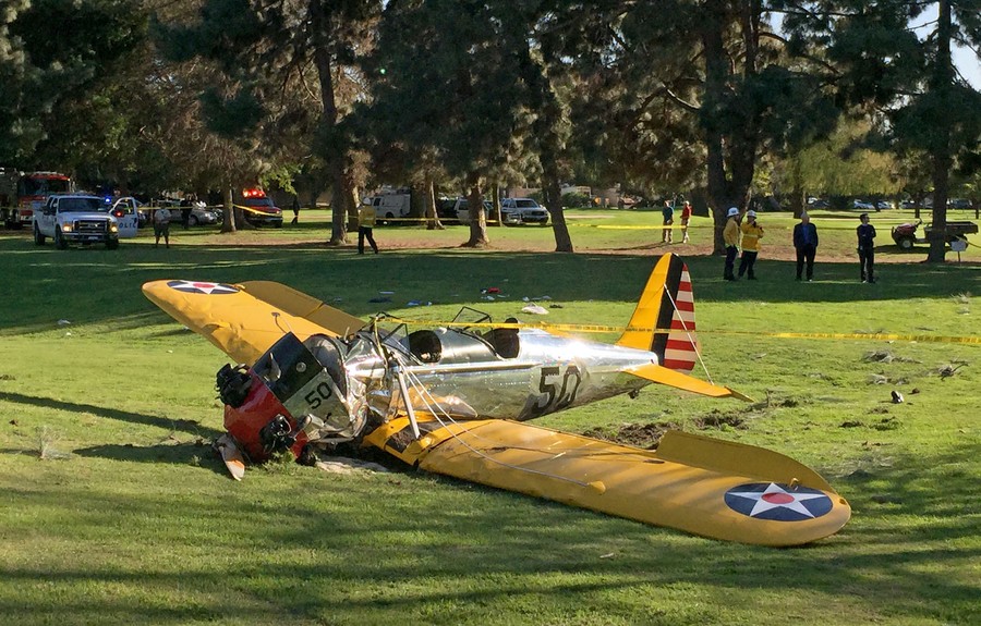 Read moreA small plane lies where it was crash-landed by the actor Harrison Ford on the Penmar Golf Course in the Venice area of Los Angeles on March 5, 2015. Ford, described as "battered but OK" by his son, crashed the airplane shortly after taking off from a nearby airport and reporting engine problems. #