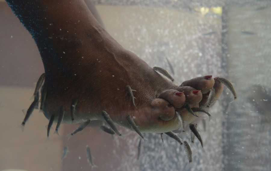 Read moreA client gets a pedicure at the Euphoria Fish Spa in Nairobi on March 4, 2015. Garra rufa fish, also called doctor fish, are originally from Turkey and have been integrated as a spa treatment, as the fish feed on dead and dry human skin. #
