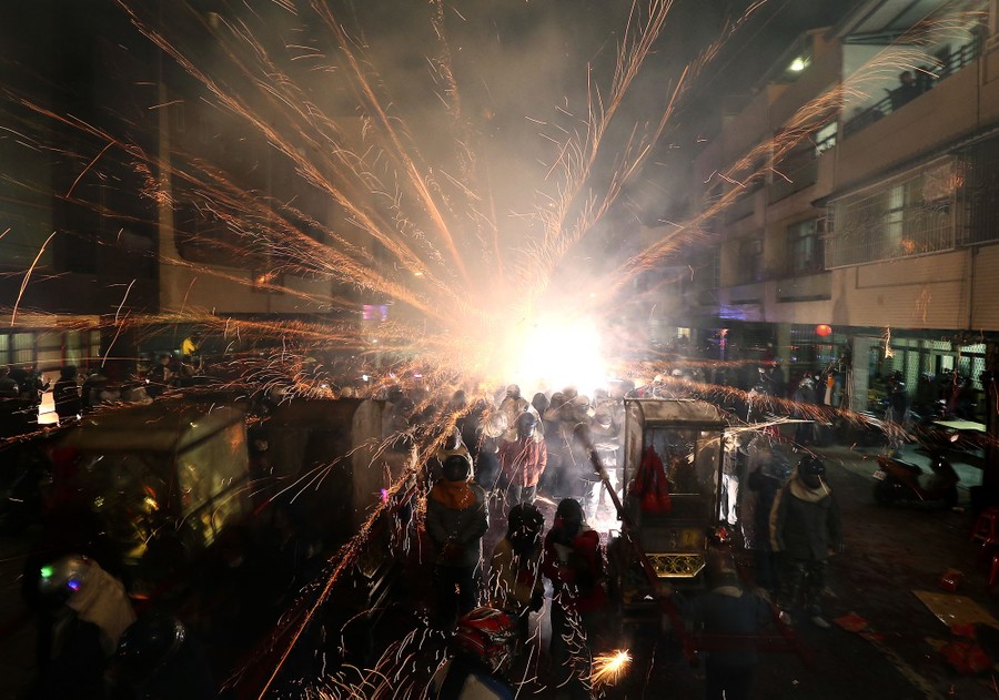 Read moreFireworks go off next to people during the Beehive Rockets Festival, ahead of the Chinese Lantern Festival in Tainan, southern Taiwan, on March 4, 2015. It is believed by locals that bad luck will go away after one is "bombed" with beehive firecrackers, a tradition that has evolved into a huge tourist attraction. #