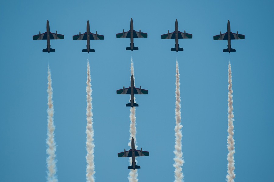 Read moreUnited Arab Emirates Air Force aerobatic team Fursan planes perform during the Langkawi International Maritime and Aerospace Exhibition 2015 on Malaysia's resort island of Langkawi on March 18, 2015. #