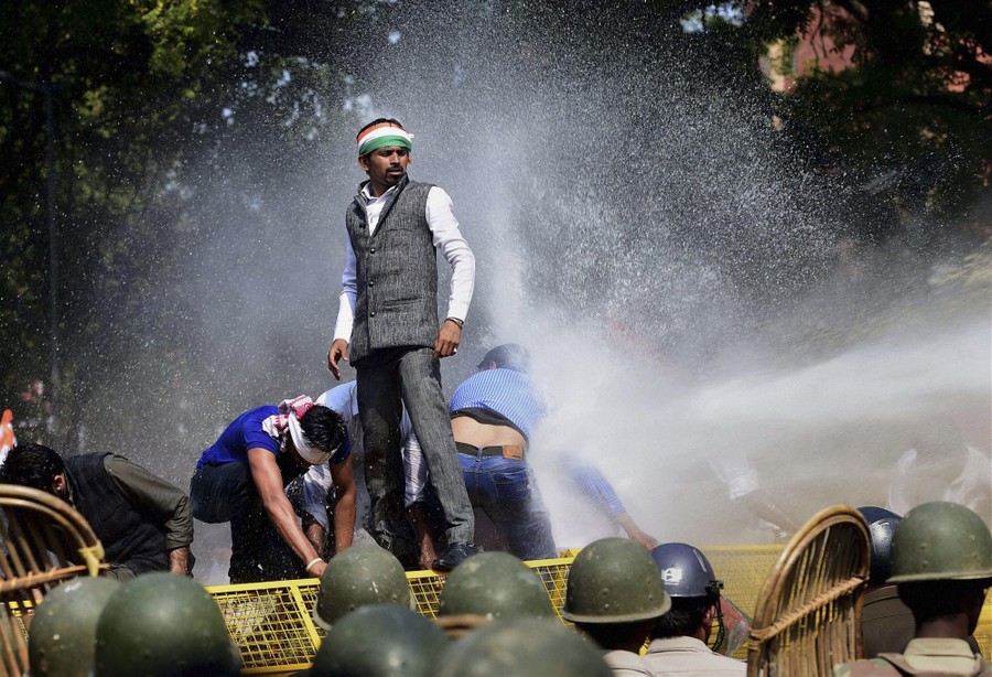 Read moreIndian police use water cannons to disperse activists of opposition Congress party’s youth wing after they jumped police barricades during a protest against the government’s land acquisition bill, in New Delhi, India, on March 16, 2015. The bill currently in parliament proposes to ease rules for acquiring land to facilitate infrastructure projects. #