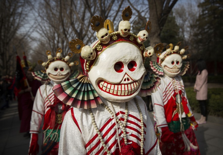 Read moreTibetan Buddhist monks dressed as ghosts take part in the Beating Ghosts ritual at the Lama Temple, or Yonghegong on March 19, 2015 in Beijing, China. The ritual is held on the the 29th day of the first month after Losar, or New Year, and is meant to expel evil spirits. #