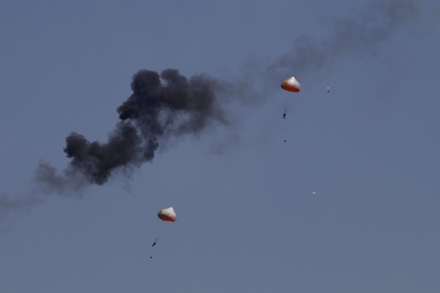 Read morePilots from Indonesia’s Jupiter aerobatics team parachute to the ground upon ejecting after a mid-air collision during a practice session at the Langkawi International Maritime and Aerospace exhibition in Langkawi, Malaysia, on March 15, 2015. #