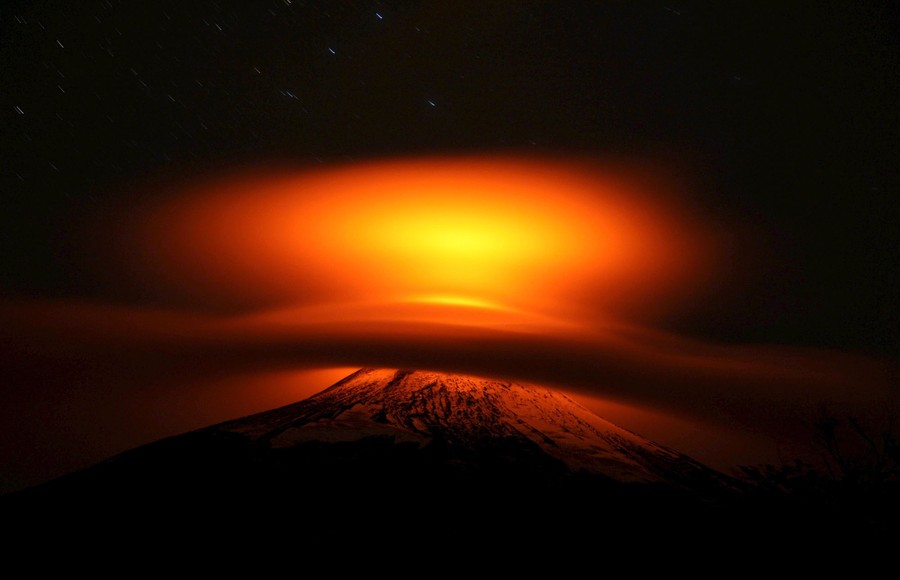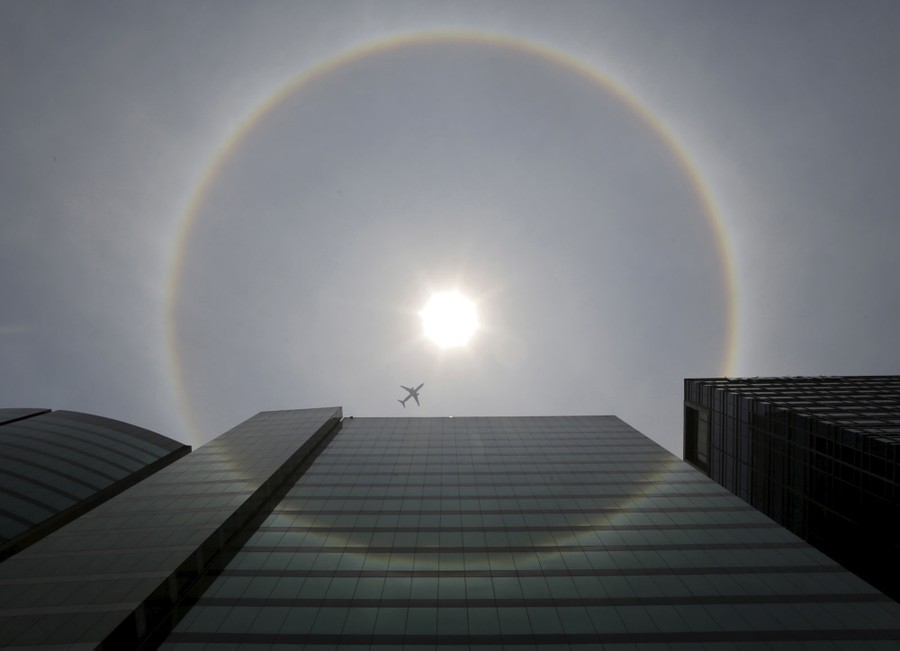 This week we have photos of an 80-foot-high tire in Michigan, dozens of Siberian students smashed into a car, two volcanic eruptions, yet another nail house in China, synchronized swimmers in a pond at the Chelsea Flower Show, a view from the top of the 104-story One World Trade Center, cows on the beach along the Mediterranean, a solar halo above Mexico, and much more.