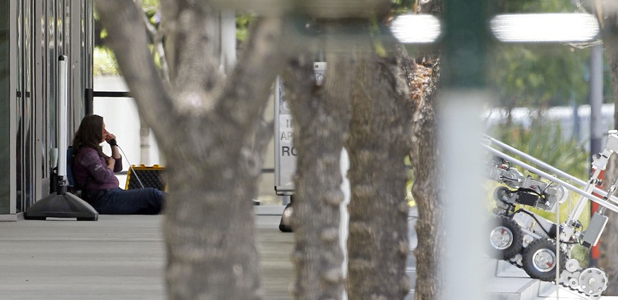 Read moreA woman talks on a mobile telephone delivered by a robot, right, as she sits in front of the downtown Los Angeles Federal Building with a package on May 20, 2015. Police Officer Tony Im said the woman was arrested Wednesday about three hours after making a bomb threat. The threat prompted two buildings to be evacuated and streets to be closed in downtown Los Angeles. #