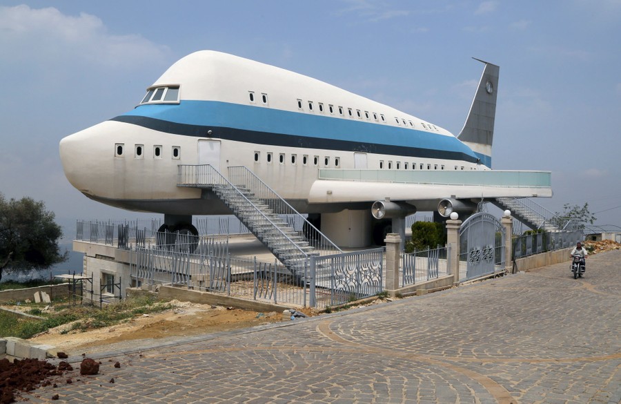 Read moreAn Airplane house in the village of Miziara, northern Lebanon, on May 12, 2015. Miziara prides itself on building residential homes that resemble ancient Greek temples, Egyptian ruins, and other themes, such as this based on an Airbus A380. #