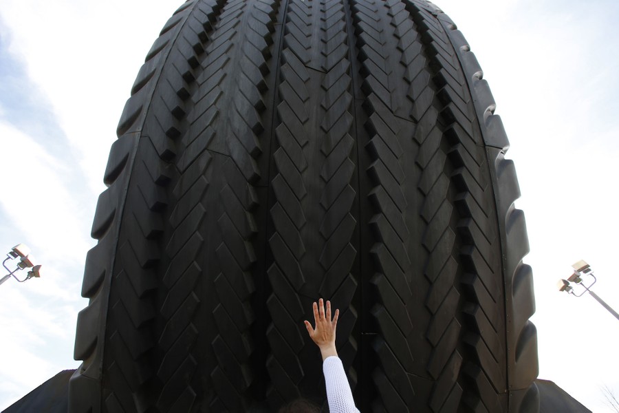 Read moreA visitor reaches for the Giant Uniroyal Tire on May 20, 2015, in Allen Park, Michigan. On Wednesday the owners allowed guests inside the 80-foot-high tire during a special half-century celebratory event. The tire has stood alongside Interstate 94 since 1965, a year after it debuted at the New York World's Fair. #