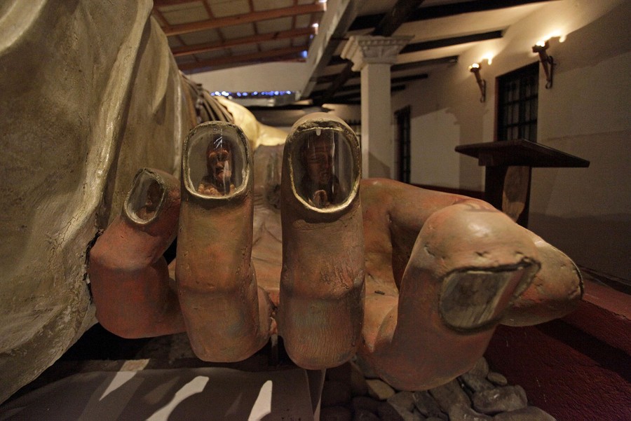 Read moreCarved figures of apostles are seen inside the nails of a reclining wooden sculpture of Christ in Montemorelos, Nuevo Leon state, Mexico, on May 15, 2015. The wooden sculpture, 12 meters in length and weighing more than three tons, was built by the Santiesteban family in their back yard, starting in August 2003, reaching completion in December of 2014. #