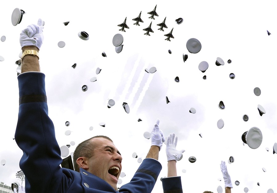 Read moreThe U.S. Air Force Academy Class of 2015 tosses their hats in celebration as the U.S. Air Force Thunderbirds roar over Falcon Stadium in Colorado Springs, Colorado, on May 28, 2015. Over 800 cadets graduated and became second lieutenants. Deborah Lee James, the Secretary of the Air Force, gave the graduation address. #
