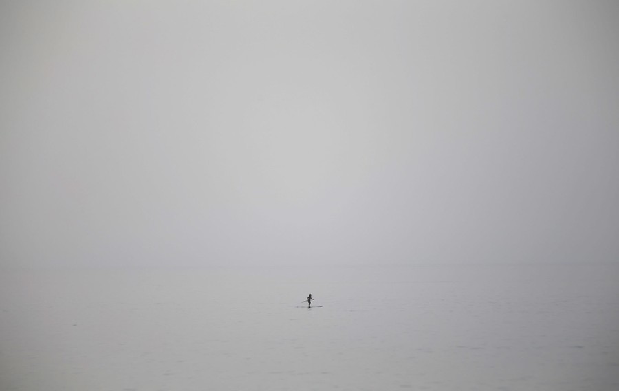 Read moreA man stands on a paddleboard as haze and sand cover the Mediterranean sea off Tel Aviv, Israel on May 27, 2015. The temperature was about 42 degrees Celsius (107 degrees Fahrenheit) in the Israeli city with a heat wave across the Middle East. #