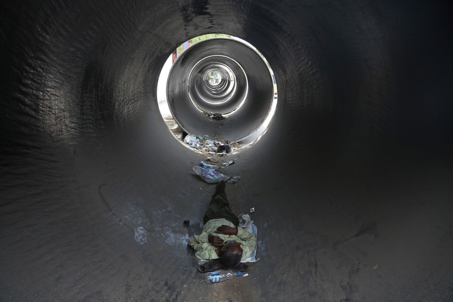 Read moreAn Indian man rests inside a concrete pipe on a hot summer day in Hyderabad, India, on May 27, 2015. Hundreds of people have died in southern India since the middle of April as soaring summer temperatures scorch the country. #
