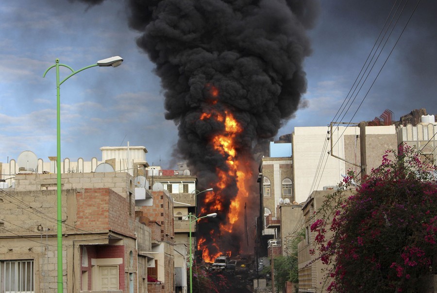 Read moreSmoke billows from a burning fuel truck after it was set ablaze during clashes between Houthis and fighters of the Popular Resistance Committees in Yemen's southwestern city of Taiz on May 25, 2015. #