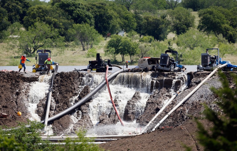 Read moreWorkers tend to equipmant used to pump water from Padera Lake on May 27, 2015 in Midlothian, Texas. Officials feared that the temporary dam on Padera Lake would fail due to recent heavy rains in the area. Areas throughout Texas experienced flash flooding and numerous deaths due to weeks of heavy rainfall. #