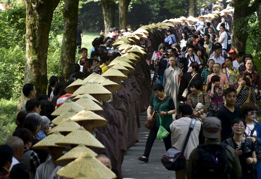 Read moreBuddhist monks march to collect alms during an assembly to mark Buddha's birthday in Hangzhou, Zhejiang province, China, on May 25, 2015. Over 630 monks from the local Buddhist temples participated in a march on Monday to celebrate the birthday of Gautama Buddha, which falls on the eighth day of the fourth month in the Chinese lunar calendar. All the collected alms will be donated to charity organizations, local media reported. #
