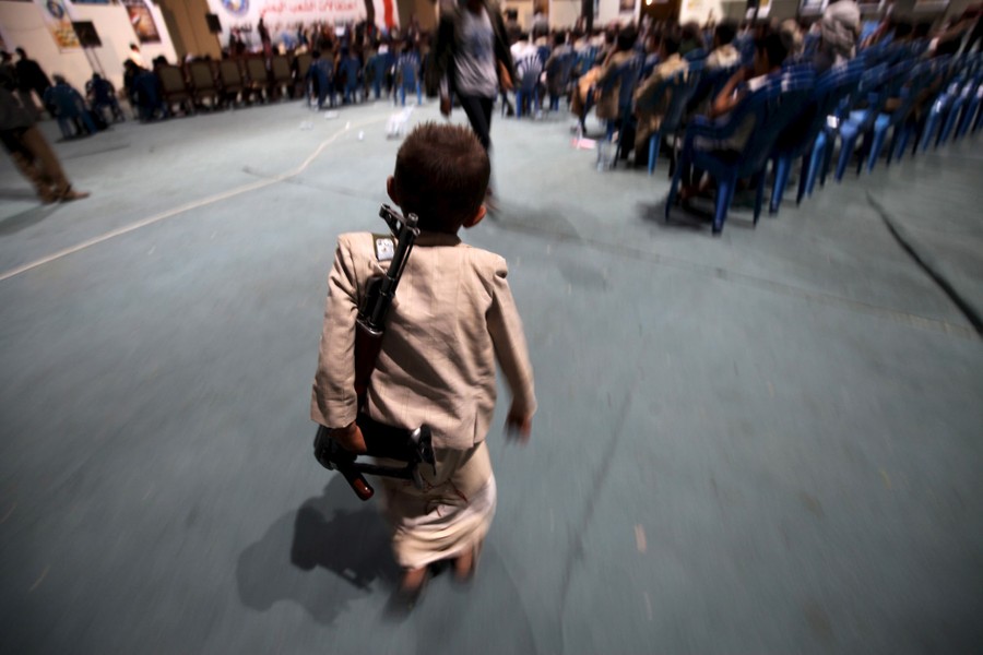 Read moreA boy holds a rifle while attending celebrations with his brother, marking the 25th anniversary of Yemen's unification, in Sanaa, on May 23, 2015. North and South Yemen were formally united in 1990. #
