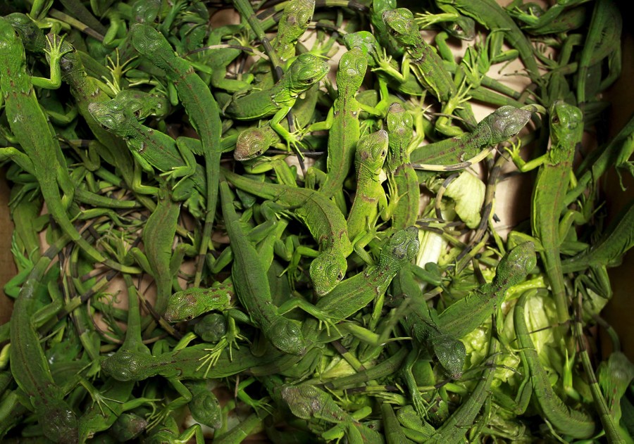 Read moreRescued baby iguanas sit in a cardboard box in an office of the Ministry of Environment in San Jose, Costa Rica, on May 25, 2015. Officers from the national police force rescued 81 iguanas that had been confined to a box at a hotel in San Jose. It is presumed that the captive iguanas were the subject of an exotic pet smuggling effort, according to a press release issued by the Ministry of Public Security. The Ministry of the Environment rehabilitated the iguanas in a natural habitat. #