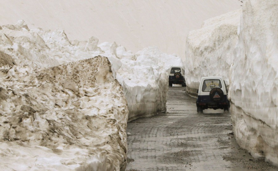 Read moreVehicles drive past walls of snow on the Zojila Pass road, about 110 kilometers (68 miles) north of Srinagar, India, on May 13, 2015. The Srinagar-Leh national highway connecting Ladakh to the Kashmir Valley was re-opened to traffic Wednesday after remaining closed for nearly six months. The highway passes through the 3,550 meter-high Zojila pass which lies on the lower depressions of the Himalayan range. #