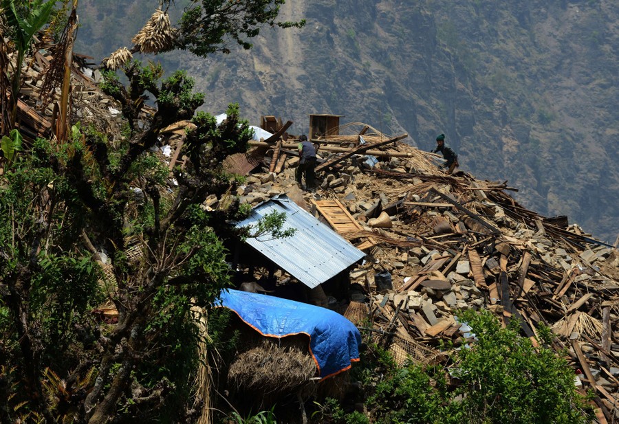 Read moreNepalese residents remove rubble from damaged homes in the village of Ebi in Dhading district some 60 km northwest of Kathmandu on May 11, 2015. The April 25, 2015 disaster completely destroyed 288,798 houses nationwide in Nepal while 254,112 homes were partially damaged, according to the Himalayan country's National Emergency Operation Centre. Large areas of Kathmandu were turned into piles of rubble and almost two weeks on from the 7.8-magnitude quake thousands are still living in makeshift tents in the capital. #