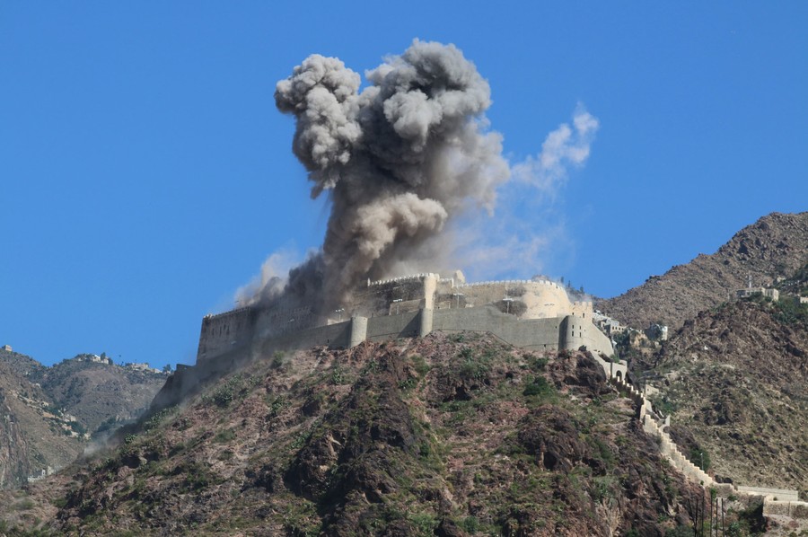 Read moreSmoke rises from Al-Qahira castle, an ancient fortress that was recently taken over by Shiite rebels, following a Saudi-led airstrike in Taiz city, Yemen, on May 12, 2015. Warplanes from a Saudi-led coalition kept up their airstrikes in Yemen on Tuesday, targeting the positions of Shiite rebels and their allies just hours ahead of the scheduled start of a five-day humanitarian cease-fire. #
