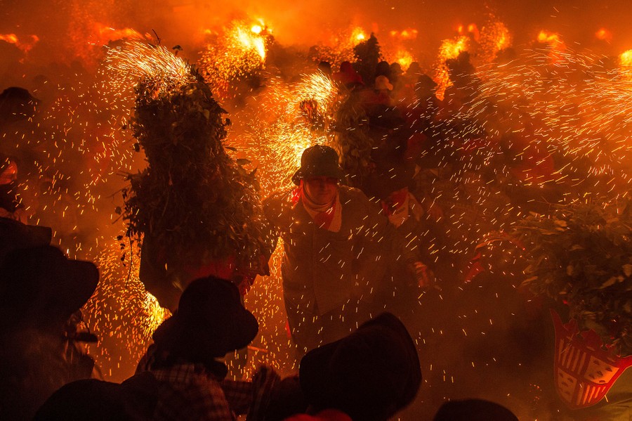 Read moreFirecrackers explode as revelers take part of the dance of the 'Plens', in Catalan, during the first day of 'La Patum' Festival on June 4, 2015, in Berga, Spain. #