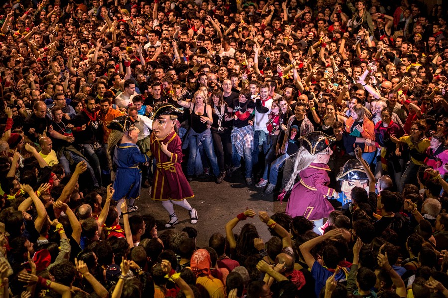 Read moreRevelers gather around 'Nans Vells', old dwarves in Catalan, during the first day of 'La Patum' Festival on June 5, 2015 in Berga, Spain. The Patum festival's roots are found in the theatrical performances of the Middle Ages and is held in the town of Berga each year during the week of Corpus Christi. The event is believed to date from the second half of the 14th century, although the first written reference to the Corpus celebrations in Berga were made in 1454. #