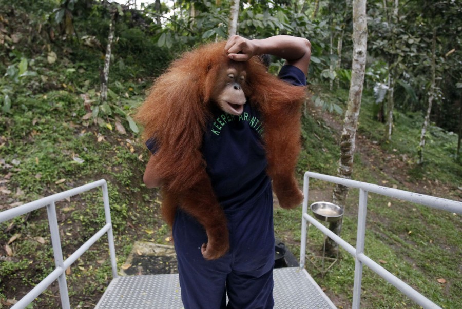 Read moreA worker of Sumatran Orangutan Conservation Program carries a tranquilized Sumatran orangutan as it is prepared for release into the wild at a rehabilitation center in Kuta Mbelin, North Sumatra, Indonesia, on July 10, 2015. The orangutans at the center were mostly rescued from palm oil plantations or confiscated from homes where they were kept as pet animals. Orangutan populations in Indonesia’s Borneo and Sumatra islands are facing severe threats from habitat loss, illegal logging, fires and poaching. Conservationists predict that without immediate action, orangutans are likely to be the first great ape to become extinct in the wild. #