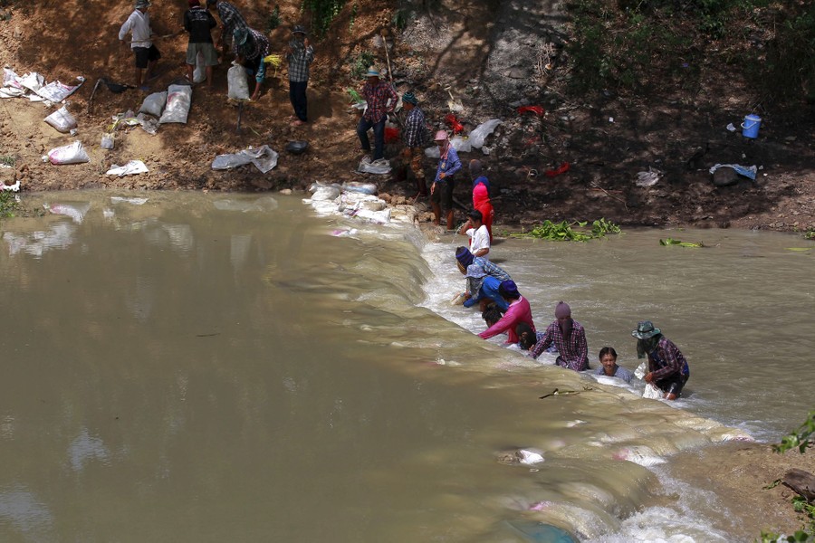 Read moreFarmers stack sandbags into Tharakam canal in an attempt to slow down water flow in Suphan Buri province, west of Bangkok, Thailand, on July 10, 2015. Farmers are becoming increasingly desperate for water to irrigate their parched fields as the rice-producing nation suffers its worst drought in more than a decade. The wet or monsoon season is underway, but Thailand is contending with drought conditions in seven out of 67 provinces, according to the National Disaster Warning Center, and water rationing is taking place in almost a third of the country as an El-Nino-fueled drought dries the land. #