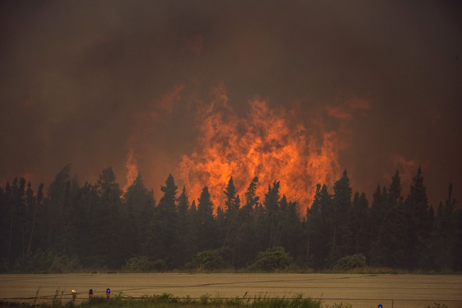 Read moreFlames from a wildfire approach trees on the edge of the airport in La Ronge, Saskatchewan, on July 5, 2015. The Canadian military has been called in to help fight wildfires in the western province of Saskatchewan, where 112 active fires had forced the evacuation of more than 13,000 people and threatened several remote towns by Monday. #
