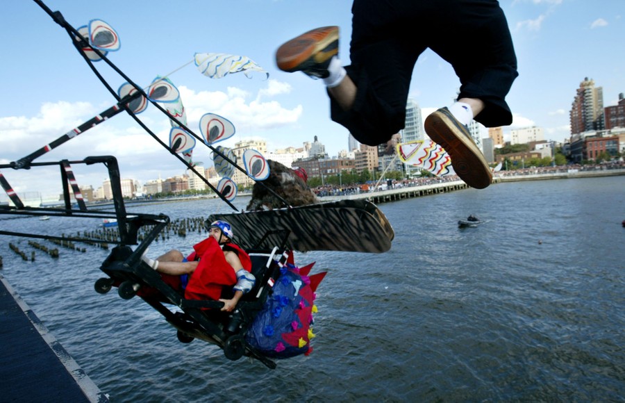 Since 1992, Red Bull has been organizing Flugtag (“flying day”) events around the world, where participants build and pilot homemade flying machines off a 28-foot-high flight deck above a body of water. Entries are judged for distance, creativity, and showmanship. The aerodynamic qualities of many of the creatively built aircraft are questionable, and most do not so much fly as... plummet. In 2013, the team “The Chicken Whisperers” set a distance record of  258 feet (78.64 meters) in Long Beach, California. Gathered here are images of Flugtag events over the past several years.