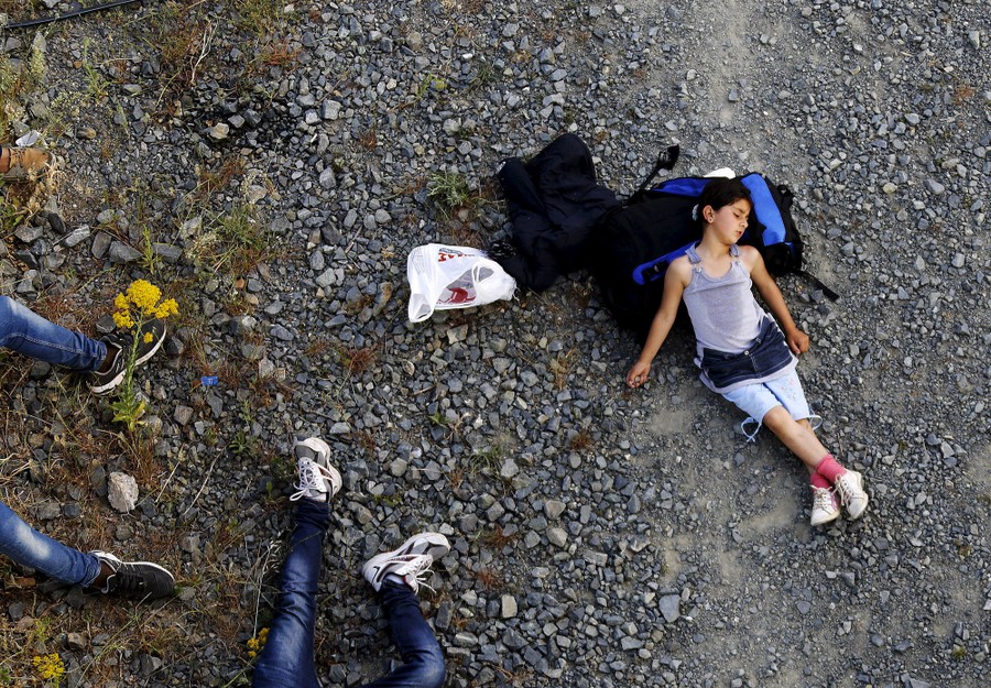 Read moreSeven year-old Ariana, a Kurdish-Syrian migrant, rests before crossing into Macedonia along with another 45 Syrians near the Greek border village of Idomeni, Kilkis prefecture, on May 14, 2015. #