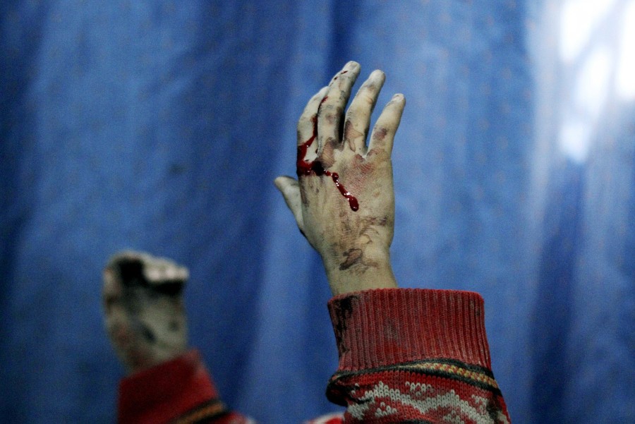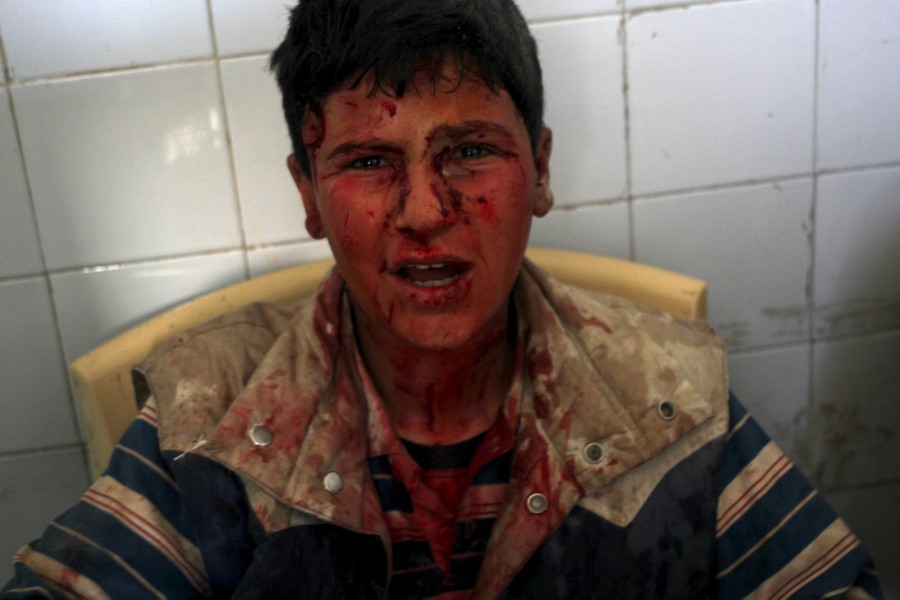Read moreBlood covers the hands of an injured boy lying in a field hospital after what activists said were airstrikes by forces loyal to Syria’s President Bashar al-Assad in the Douma neighborhood of Damascus on February 6, 2015. #