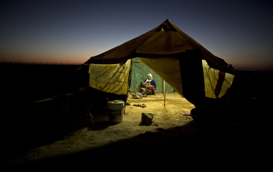 Read moreA Syrian refugee tends to her daughter while cooking inside her tent at an informal tented settlement near the Syrian border on the outskirts of Mafraq, Jordan, on August 26, 2015. #