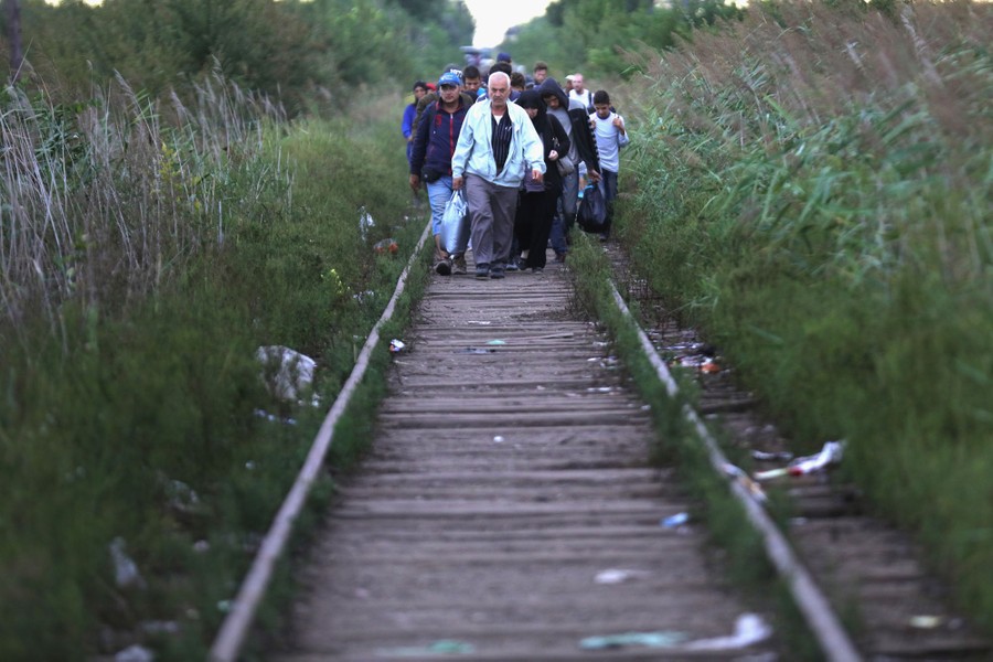 Read moreHundreds of migrants and refugees continue to cross the border from Serbia into Hungary along the railway tracks close to the village of Roszke on September 6, 2015, in Szeged, Hungary. #