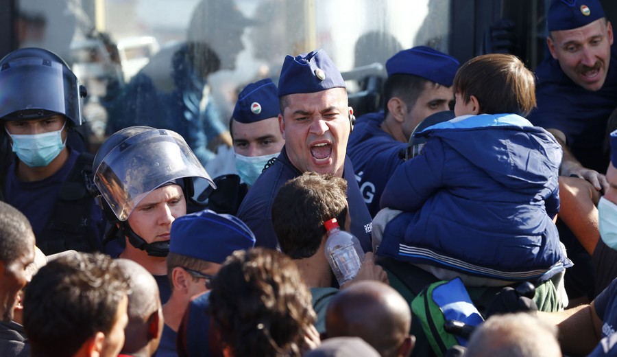 Read moreMigrants who had crossed the Serbian border into Hungary fight to get on a bus taking people to a refugee camp on September 8, 2015, in Morahalom, Hungary. Some of the men who managed to get on the bus ended up leaving their wives and children behind. #