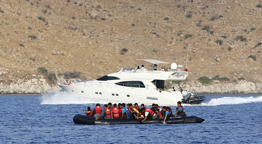 Read moreMore than 20 migrants aboard a dinghy with a broken motor and two shovels try to return to Turkey as they drift while attempting to reach the Greek island of Kos after leaving Bodrum, Turkey, on September 20, 2015. #