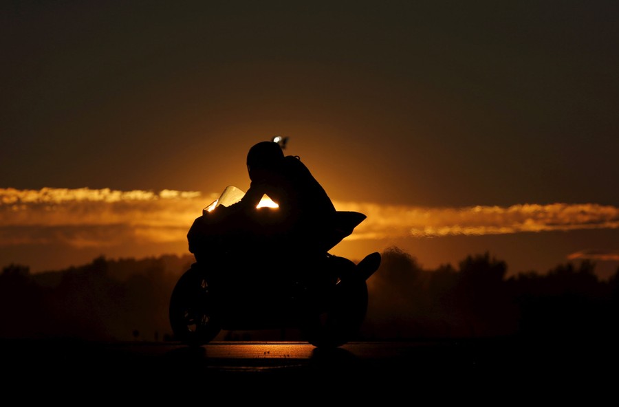 Read moreA competitor rides his motorcycle at sunset during the 79th Bol d'Or motorcycle endurance race at the Paul Ricard circuit in Le Castellet, France, on September 19, 2015. #